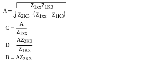 Определение коэффициентов А, B, C, D, используя входные сопротивления при режимах ХХ (Холостого Хода) и КЗ (Короткого Замыкания)