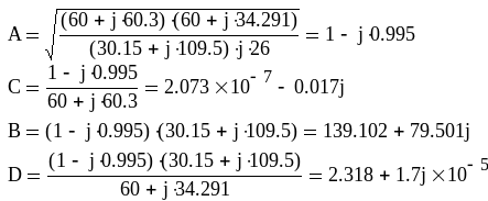 Зная коэффициенты A, B, C, D, определим параметры П-схемы замещения: