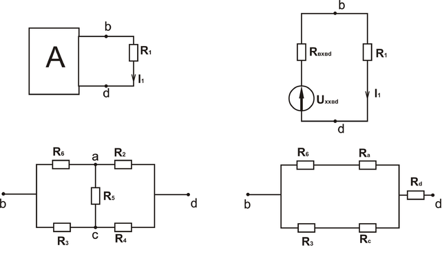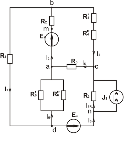 1. Упростить схему, заменив последовательно и параллельно соединённые резисторы четвёртой и шестой ветвей эквивалентными. Дальнейший расчёт вести для упрощённой схемы.