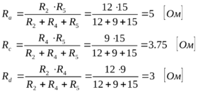 Определим входное сопротивление двухполюсника заменив исходную схему эквивалентной преобразовав схему соединения треугольником в схему соединения звездой.