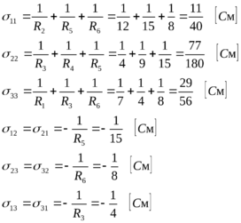 | метод контурных токов (ток в Амперах) | 0.967 | 0.914 | 0.686 | -0.053 | 0.633 | 0.281 |