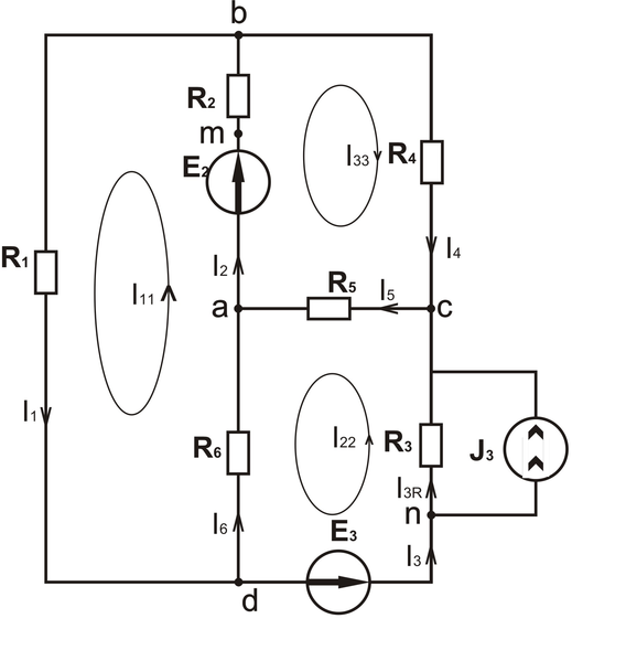 3. Определить токи во всех ветвях схемы методом контурных токов.