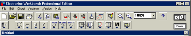 2.1. Строка основных групп компонентов схем. Группы компонентов вызываются однократным нажатием левой кнопки мыши на клавишу в окне.