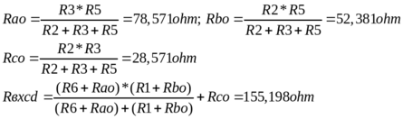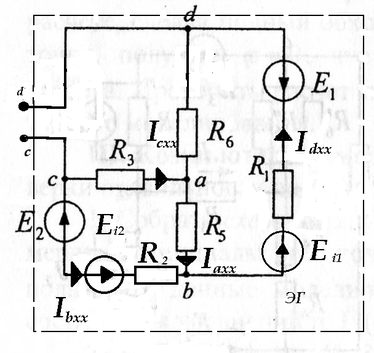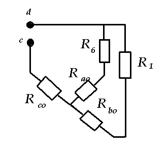 Определим входное сопротивление схемы Rвxbcxx,Удаляем источники энергии, оставляя их внутренние сопротивления и делаем преобразование треугольника в звезду.