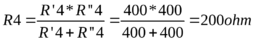 R1 = 325 ohm, R2 = 100 ohm, R3 = 150 ohm, R’4 = 400 ohm, R’’4 = 400ohm, R5 = 275 ohm, R’6 = 100 ohm,