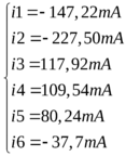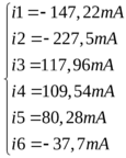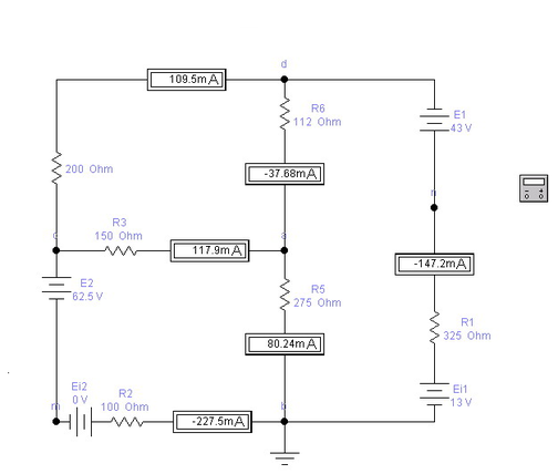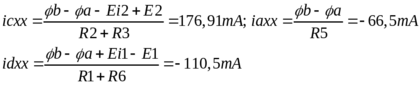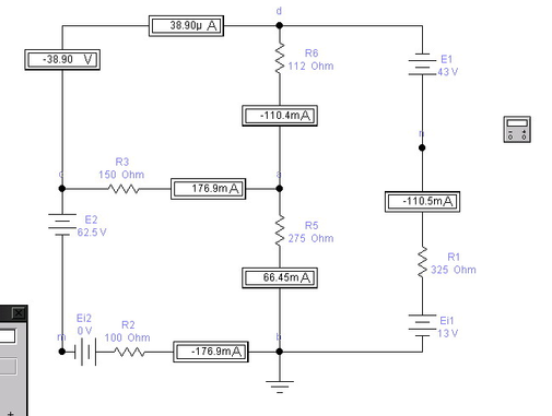 R’’6 = 12 ohm, E1 = 43 V, E2 = 62,5 V, I1 = 0,04 A, I2 = 0 A.