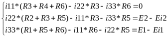 Число ур-ий системы МКТ равно числу ур-ий по 2 закону Кирхгофа. В контурах I, II, III протекают неизвестные контурные токи i11, i22, i33, которые и являются неизвестными системы.