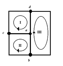 Число уравнений системы равно числу уравнений по 1 закону Кирхгофа. Неизвестными системы являются потенциалы узлов. Заземлим узел b.