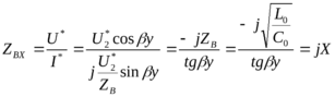 Если нагрузка согласована (т. е. Z2 = ZB), то из формулы следует, что входное сопротивление равно волновому: ZBX = ZВ.