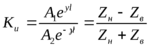 . При согласованной нагрузке Кu = 0, при холостом ходе Кu = 1. Коэффициент отражения по току Ki = -Ku .