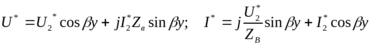 Чтобы получить формулы для определения напряжения и тока в любой точке, удаленной от конца линии на расстояние у, вместо ZB подставим Z2, заменим I2*Z2 на U2* и U2* / Z2 на I2*. Получим: