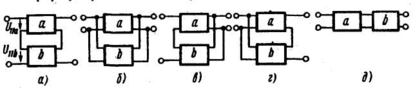 (рис. б ) — Y-форму, при последовательно-параллельном (рис. в) — H-форму, при параллельно-последователыюм (рис. г) — G-форму, при каскадном (рис.д)— A-форму.