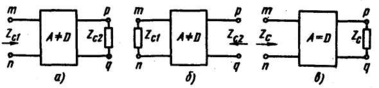 показано на рис. б — перекрещены обе пары концов второго четырехполюсника (при перекрещивании обеих пар концов все элементы любой матрицы остаются неизменными).
