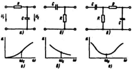 RС-фильтры. На рис. а - в изображены схемы НЧ, ВЧ и