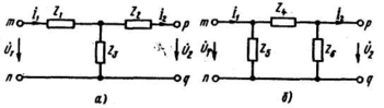 , где Zc2 — входное сопротивление со стороны зажимов pq, когда нагрузка Zc1 подключена к зажимам mn (рис. б); при этом коэффициенты А и D меняются местами: