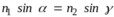 4. Закон преломления. Был установлен экспериментально Снеллиусом. Согласно этому закону преломленный луч лежит в плоскости падения, причем отношение синуса угла падения к синусу угла преломления не зависит от угла падения и является для данных двух сред величиной постоянной, т.е.