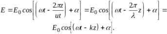 Наиболее простым, но важным частным случаем электромагнитной волны, является волна, возникающая в результате гармонических колебаний с частотой и распространяющаяся вдоль оси z со скоростью u. Она записывается следующим образом:Выражение (1.5) можно записать любым из приводимых ниже способов: