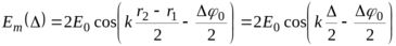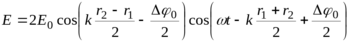 где r1 и r2 - расстояния от точки М до источников S1 и S2, k=2/ - волновое число, 0 - начальная разность фаз световых волн, испускаемых источниками S1 и S2 .