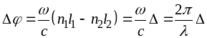Величина, равная произведению показателя преломления среды, где распространяется электромагнитная волна, на длину пути, пройденную лучом, называется оптической длиной пути L=nl. Для двух лучей вводится понятие оптической разности хода =n1l1-n2l2, которая связана с разностью фаз. Разность фаз двух лучей, распространяющихся в средах с показателями преломления n1 и n2, равна
