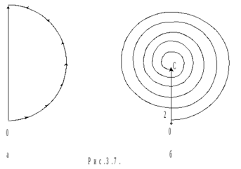 Разобьем волновую поверхность на равные по площади кольцевые подзоны, аналогичные зонам Френеля, но гораздо меньше по ширине. Колебание, создаваемое в точке наблюдения каждой такой подзоной, можно изобразить в виде вектора, длина которого равна амплитуде колебаний, а угол, образуемый вектором с направлением, принятым за начало отсчета, дает начальную фазу колебаний. Колебание, создаваемое в точке В любой из таких подзон, имеет приблизительно такую же амплитуду, как и колебание, создаваемое предшествующей подзоной, но будет отставать от него на практически одинаковую для всех соседних подзон величину. На рис.3.7а изображена векторная диаграмма, получающаяся при сложении колебаний для действия одной центральной зоны, а на рис.3.7б - для действия всей волновой поверхности.