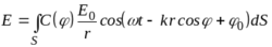 Результирующее световое колебание в точке наблюдения представляет собой суперпозицию колебаний, дошедших в точку В от всех элементов поверхности S: