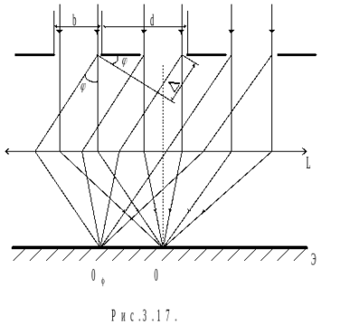 При выполнении этого условия I=N2I0, т.е. в направлении углов, удовлетворяющих (3.36), происходит увеличение интенсивности света, прошедшего через одну щель, в N2 раз.