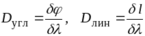 Дисперсия угловая Dугл или линейная Dлин определяет угловое или линейное l расстояние между двумя спектральными линиями, отличающимися по длине волны на единицу