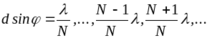 Между главными максимумами располагается N-1 минимум интенсивности, угловое положение которых находится из условий