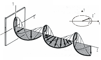 которых лежат во взаимно перпендикулярных плоскостях, результирующая волна имеет эллиптическую поляризацию. Волна называется эллиптически поляризованной, если при фиксированном значении координаты z (координаты, вдоль которой волна распространяется) конец вектора