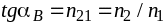 При угле падения, равным углу Брюстера, определяемым соотношением