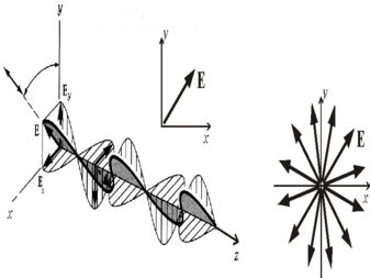 Для волны, изображенной на рис. 4.1а, направление колебаний вектора Е является выделенным. Эта волна поляризована. Волна, изображенная на рис. 4.1.б, неполяризованная, так как все направления колебания вектора Е в плоскости беспорядочно изменяются с течением времени и поэтому эквивалентны.Существуют три типа поляризации света: линейная, циркулярная (круговая) и эллиптическая. Кроме того, свет может быть неполяризованным и частично поляризованным.