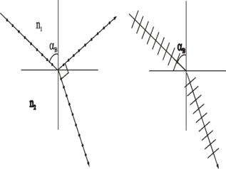 Если падающий свет неполяризован или частично поляризован, а угол падения отличен от угла Брюстера, то отраженная и преломленная волна частично поляризованы (рис. 4.6б). При падении линейно поляризованной волны на границу раздела двух сред могут возникнуть два принципиально различных случая. Если векторХарактеристики