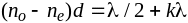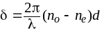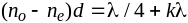 При распространении перпендикулярно оптической оси линейно поляризованная волна разбивается на две - обыкновенную и необыкновенную, разность показателей преломления для которых равна