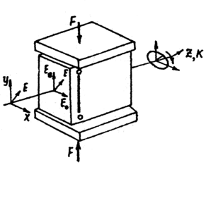 Искусственная анизотропия проявляется в возникновении двулучепреломления в первоначально изотропных средах при внешних воздействиях.Упруго-оптический эффект. Оптически изотропное тело при деформациях сжатия и растяжения приобретает свойство кристалла, оптическая ось ОО которого коллинеарна с направлением деформирующих сил (рис.4.10а).