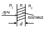 и толщиной d, которая определяется из условия минимума при интерференции волн, отраженных от границ раздела сред с n1 и n и n и n2 2dn=(2m+1)/2, m=0,1,2… (18)