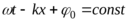 Скорость v распространения гармонической волны называется фазовой скоростью. Она равна скорости перемещения волновой поверхности. Например, в случае плоской гармонической волны из условия