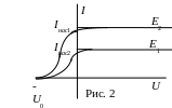 На рис. 2. приведены зависимости фототока I от напряжения U между электродами при различных интенсивностях света (энергетической освещенности E).