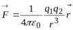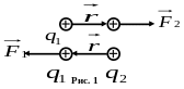 Ф / м — электрическая постоянная. В итоге имеем k = 9109 м/Ф, или Нм2 /Кл2. Измеряя в (1) расстояние в "м", а заряды в "Кл", силу получим в "Н". Одноименно заряженные тела отталкиваются, разноименно заряженные -притягиваются. Закон Кулона можно выразить в векторной форме: