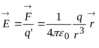 Согласно закону Кулона на пробный заряд q' со стороны заряда q будет действовать сила (2); с учетом этого напряженность поля, создаваемого точечным зарядом q,
