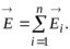 .е, равна векторной сумме напряженностей полей, которые создавал бы каждый из зарядов в отдельности. Таким образом,