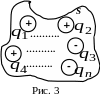 Рассмотрим поток, создаваемый системой зарядов, сквозь замкнутую поверхность произвольной формы, внутри которой они находятся (рис.3):