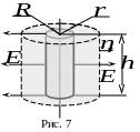 .2.3. Поле заряженного цилиндра: заряженный цилиндр радиуса R, (см. рис. 7), окружим коаксиальной цилиндрической поверхностью радиуса r; поток вектора