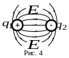(силовые линии) нигде, кроме зарядов, не начинаются и не заканчиваются: они, начавшись на заряде, уходят в бесконечность для положительного заряда, либо, приходя из бесконечности, заканчиваются на отрицательном заряде (картина силовых линий приводится на рис. 4); 2) если алгебраическая сумма зарядов, охватываемых замкнутой поверхностью, равна нулю, то полный поток через эту поверхность равен нулю; 3) если замкнутая поверхность проведена в поле так, что внутри нее нет зарядов, то число входящих линий вектора напряженности равно числу выходящих и поэтому полный поток через такую поверхность равен нулю.