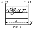 .2.2. Поле между двумя бесконечно протяженными, разноименно заряженными параллельными плоскостями, (см. рис. 6). Вне внутреннего промежутка,