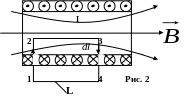 оленоидом, (см. рис. 2), называется цилиндрическая катушка, на которую вплотную намотано большое число витков провода. Пусть N - число витков вдоль длины соленоида l, тогда Интегралы на участках 1-2, 3- 4 равны нулю, т.к.