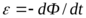 Электрический ток создает вокруг себя магнитное поле. Существует и обратное явление: изменяющееся во времени магнитное поле вызывает (индуктирует) электрический ток. Это явление было открыто Фарадеем в 1831 г. и получило название электромагнитной индукции, а возникающий ток называют индукционным током. Закон электромагнитной индукции гласит: «ПРИ ИЗМЕНЕНИИ МАГНИТНОГО ПОТОКА В КОНТУРЕ ВОЗНИКАЕТ ЭЛЕКТРОДВИЖУЩАЯ СИЛА ИНДУКЦИИ, ПРОПОРЦИОНАЛЬНАЯ ВЗЯТОЙ С ОБРАТНЫМ ЗНАКОМ СКОРОСТИ ИЗМЕНЕНИЯ МАГНИТНОГО ПОТОКА» , т.е.