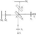 Параллельный пучок света от источника L падает на полупрозрачную пластину P1, разделяется на два когерентных пучка 1 и 2. После отражения от зеркал M1 и M2 и повторного прохождения луча 2 через пластину P1 оба луча проходят в направлении АО через объектив О2 и интерферируют в его фокальной плоскости. Пластина P2 компенсирует разность хода