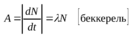 Активностью А нуклида в радиоактивном источнике называется число распадов происходящих с ядрами образца в 1 сек.