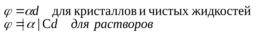 d – расстояние пройдённое светом в веществе, - удельное вращение численно равноеуглу поворота плоскости поляризации света слоем в-ва единичной длины, С – массовая концентрация.