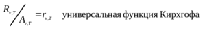 Закон Кирхгофа – отношение спектральной плотности энергетической светимости к спектральной поглощательной способности не зависит от природы тела, оно является для всех тел универсальной функцией частоты и температуры.